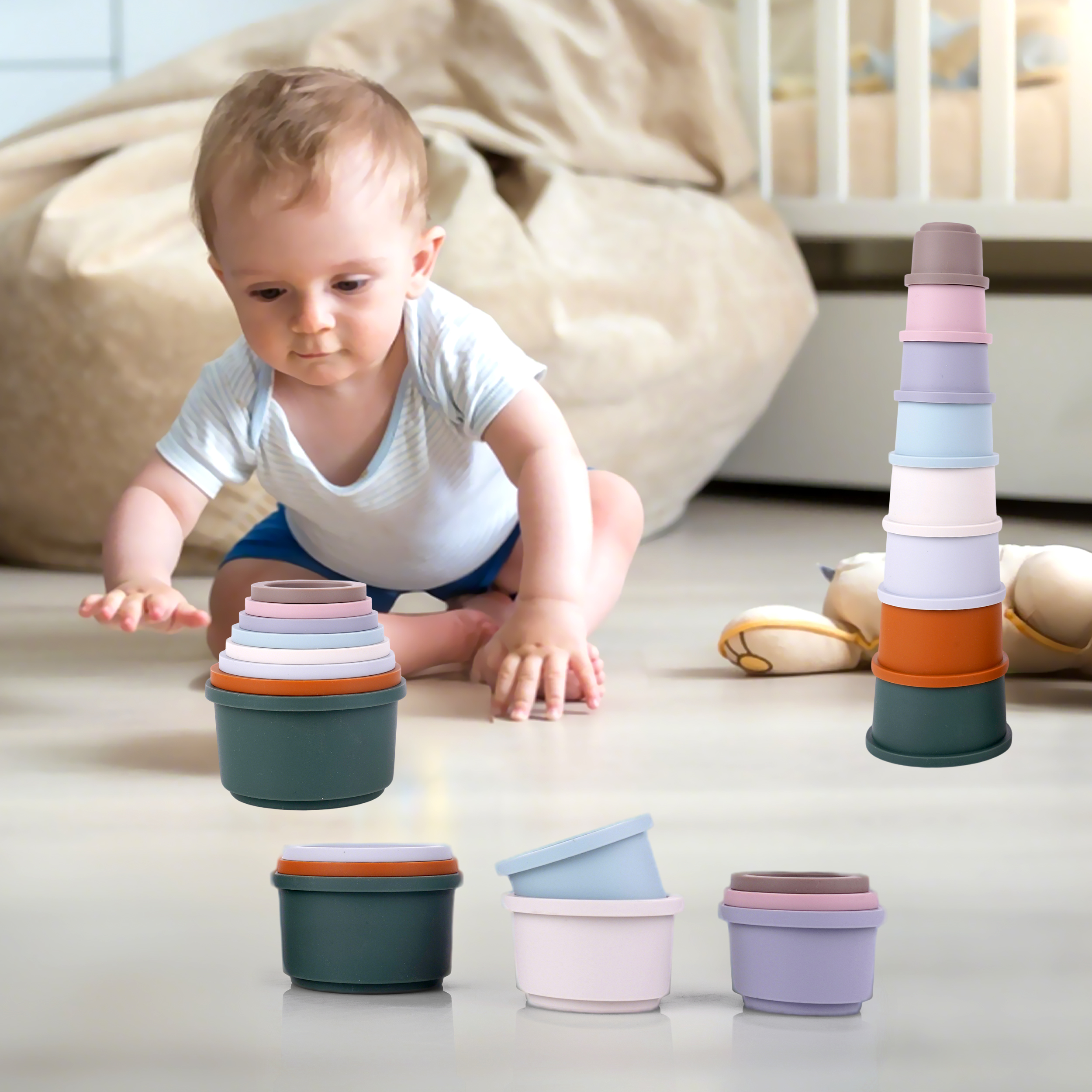 硅膠玩具硅膠疊疊杯互動玩具硅膠益智嬰幼兒玩具兒童寶寶堆堆玩具
