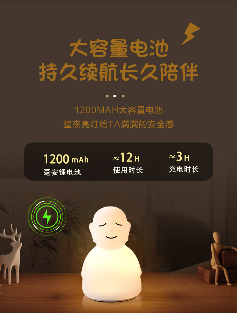 跨境LED硅膠拍拍佛主小夜燈夜間寶寶安撫睡拍拍燈遙控器感應(yīng)照明
