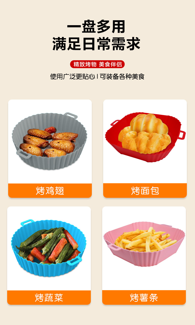 您的位置:首頁(yè) > 產(chǎn)品中心 > 硅膠廚具用品 > 空氣炸鍋硅膠烤盤(pán)易清洗不粘油硅膠炸鍋墊可重復(fù)使用空氣炸鍋墊