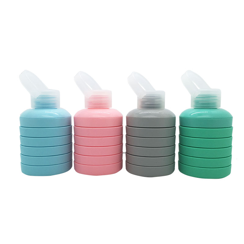 便攜式硅膠折疊水瓶采用食品級硅膠材質(zhì),符合食品級標(biāo)準(zhǔn),符合相關(guān)質(zhì)檢標(biāo)準(zhǔn),這款運(yùn)動折疊水瓶是本公司2021年最新研發(fā)生產(chǎn)的硅膠制品,顏色目前只生產(chǎn)了4種,分別為灰色,綠色,藍(lán)色,粉紅色,瓶蓋為白透明色,也可以根據(jù)要求來定制各種材質(zhì)或者是不同形狀的瓶蓋顏色或者是樣式??裳b熱水,方便旅行攜帶,具有耐摔,耐高溫,柔軟等特點(diǎn)。